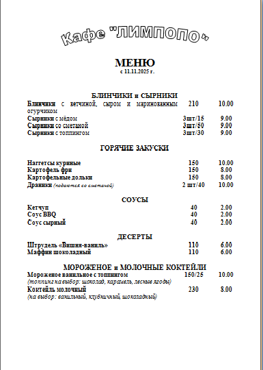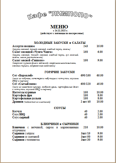 ВЫХОДНОЙ ДЕНЬ: ПОНЕДЕЛЬНИК